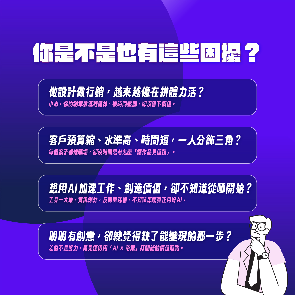 老師們不是在教你指令,而是要教你怎麼結合AI×美學×商業,把你的創意變現成鈔票💰